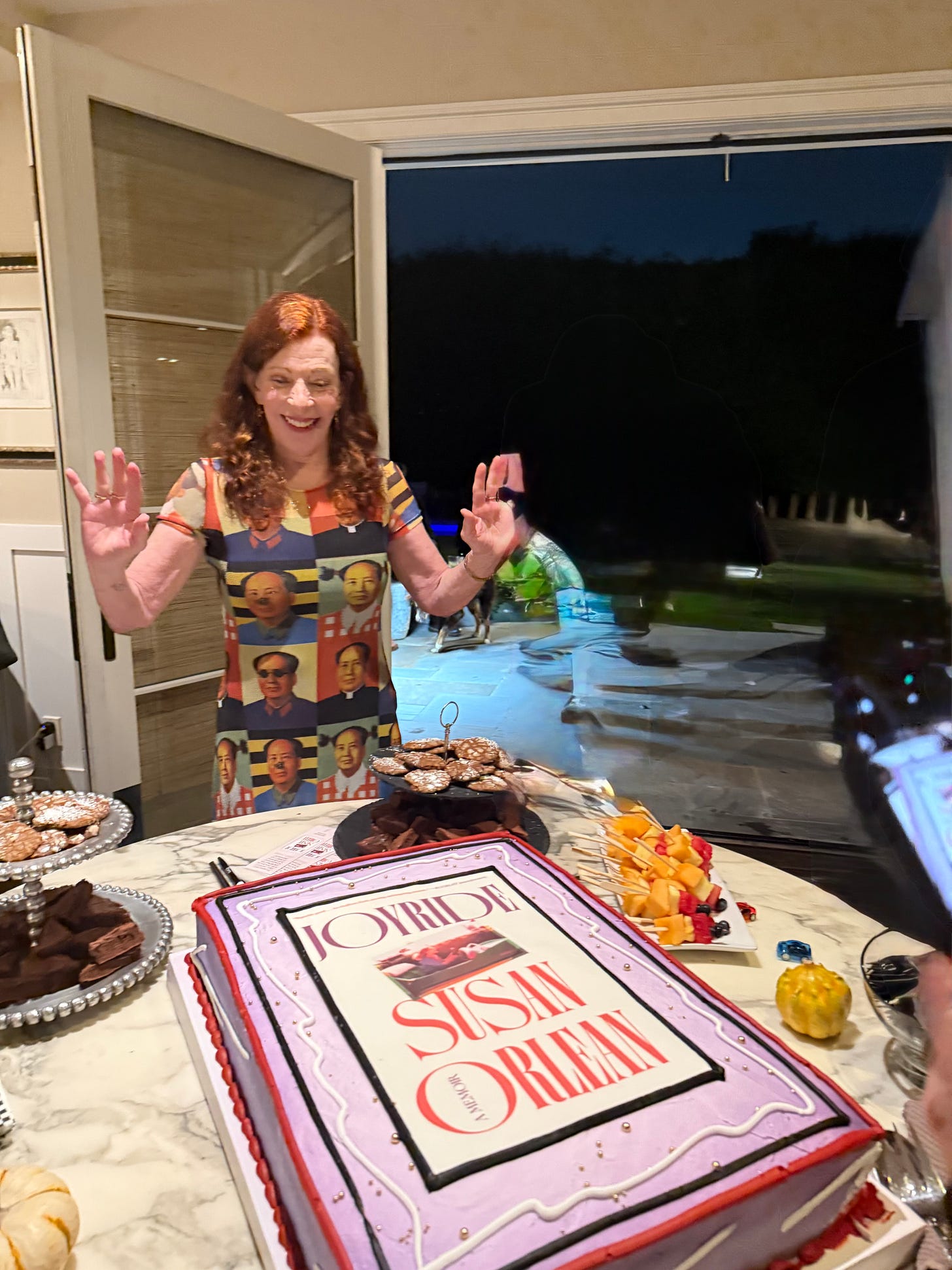 When we got home I had about thirty hours in Los Angeles, which included a book party. For me, I mean. I usually percolate for days choosing a party dress, but I had begun shedding brain cells due to fatigue, and knew I couldn’t spend too much time debating. I wore one of my two never-fail party dresses, this one a Vivienne Tam number that I bought thirty years ago. I’m proud of that, by the way: How often do you acquire something that you still like three decades later? Or even fits you three decades later?